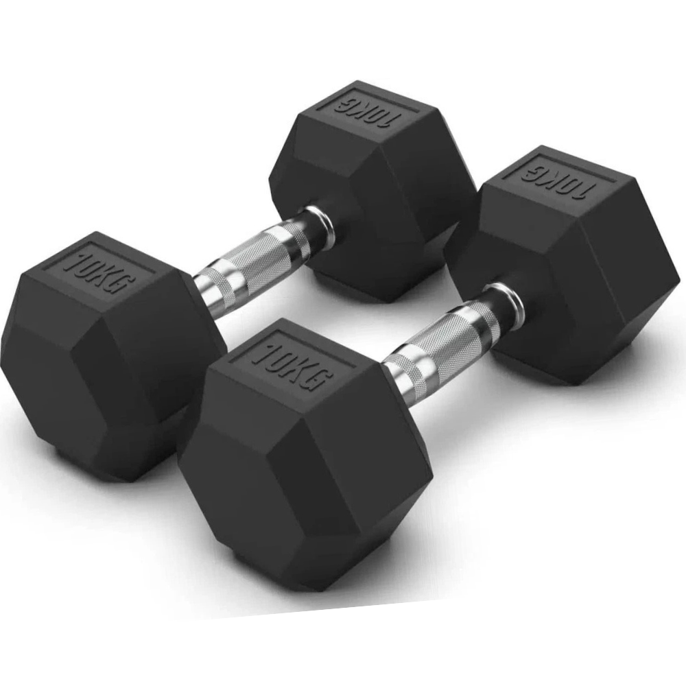 10KG Rubber Hex Dumbbell Fitness Home Gym Exercise Strength Weight Set Pair