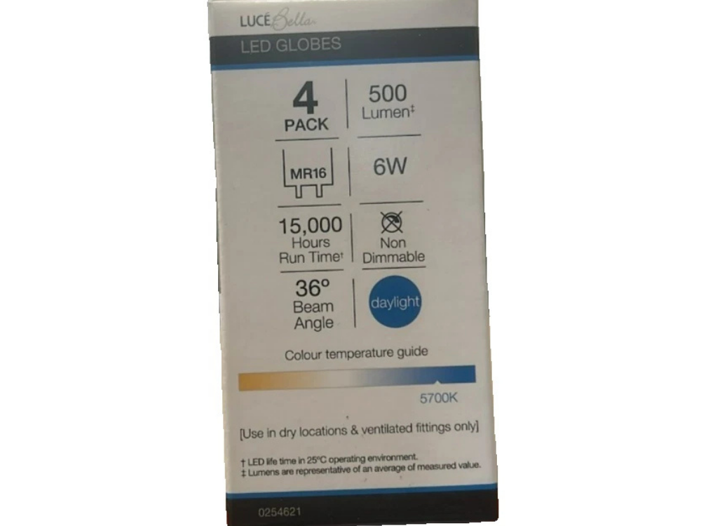 4x Luce Bella MR16 LED Globes 6W – 500 Lumen Daylight Spotlights