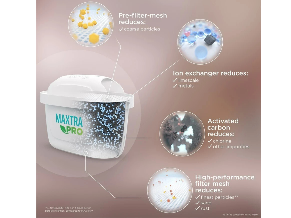 - Natural MicroCarbon Pearls reduce trace impurities, odours, and taste-impairing substances