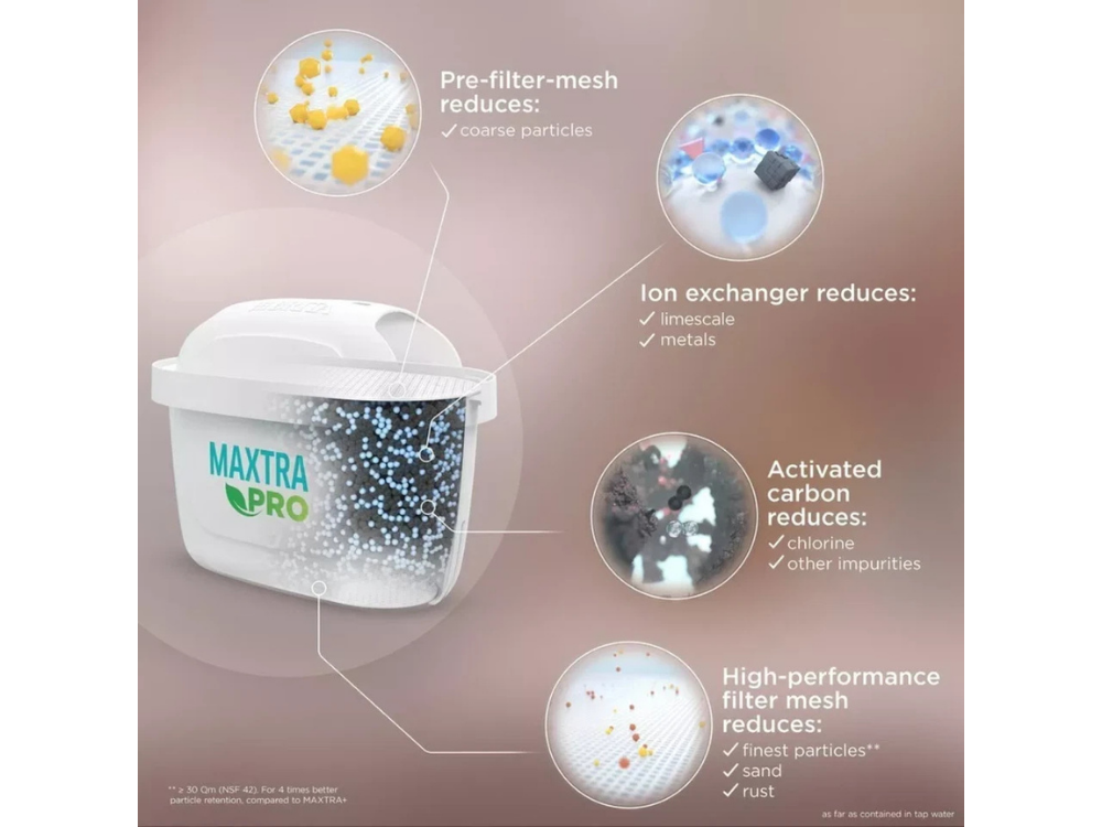 - Natural MicroCarbon Pearls reduce impurities, odors, and taste-affecting substances