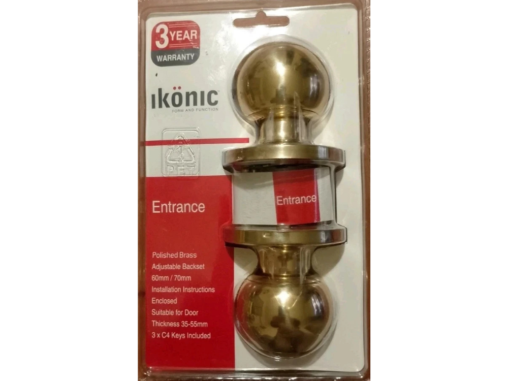 Ikonic Ruby Entry Door Knob Lock Set – Polished Brass
