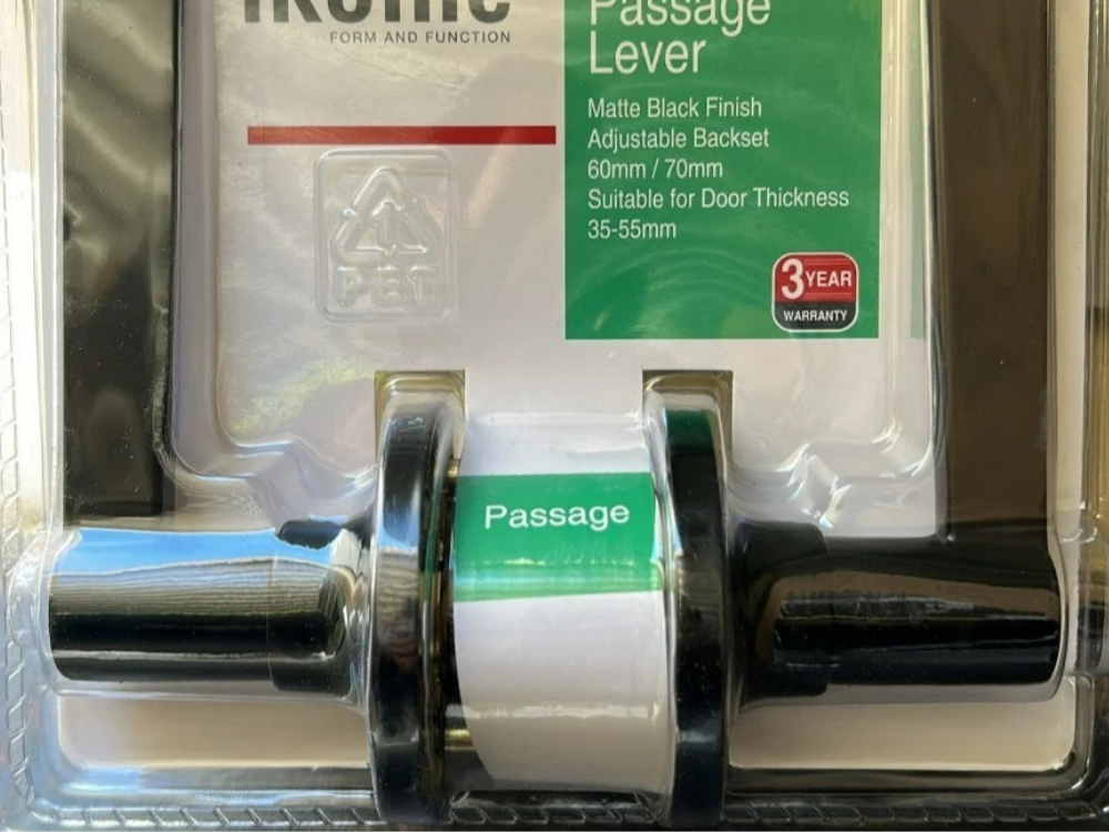 Ikonic Slimline Passage Lever Door Handles – Matte Black for Kitchen & Living Room