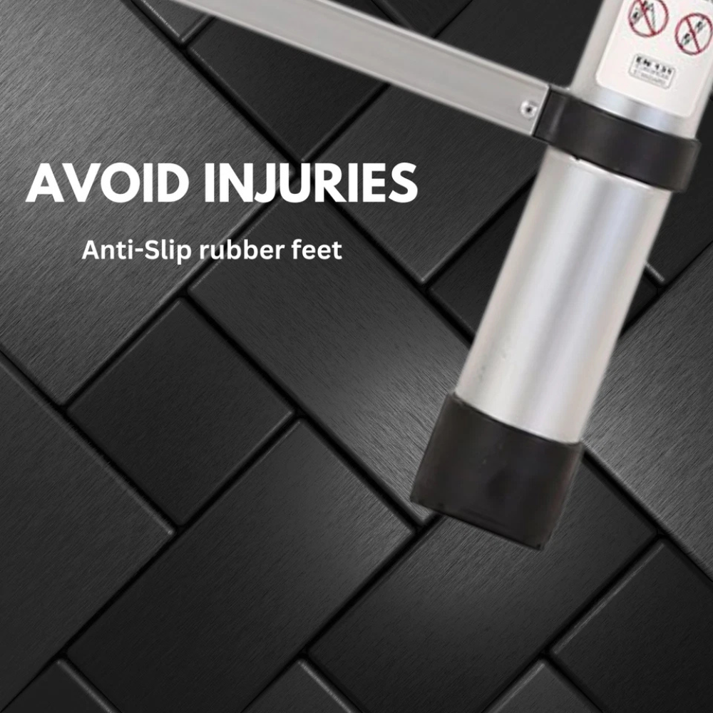 Skip the wobble of a chair. Whether you’re dusting cobwebs at home or clearing gutters for a mate, the Katashi Telescopic Ladder makes the job safe and easy.Lightweight yet tough, this extendable ladder is designed to go wherever you do — from kitchen cupboards to garage ceilings, indoors or out. Just unlock, extend, and climb with confidence.With non-slip rungs, rubber-coated feet, and AS/NZS 1892.1:2018 safety certification, it's built to prevent slips and falls. Always ensure it's fully locked before use — and if in doubt, have a mate spot you.